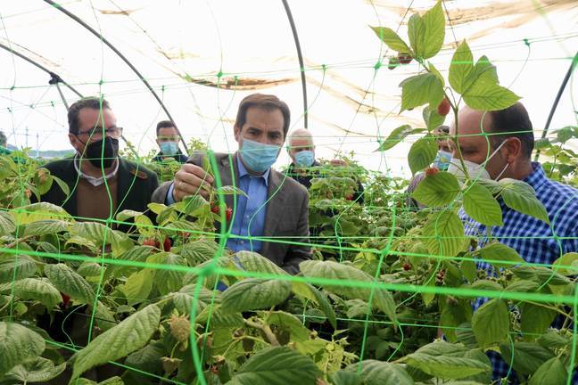 Durante una visita a la empresa Mancha la Jara en Cartaya, dedicada al cultivo de frutos rojos, el portavoz popular ha destacado el "esfuerzo" que están haciendo los empresarios de berries en los meses de pandemia para adaptarse a la situación "garantizando la calidad del fruto".