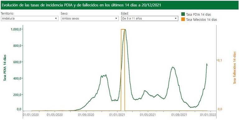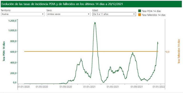De momento los datos cantan: La media de incidencia acumulada en Andalucía en la franja de edad comprendida entre los 5 y 11 años es de 555,4 pero en Huelva es de 748,9. En el caso de 0 a 4 años, en Andalucía es de 271,9 y en Huelva de 341,6.