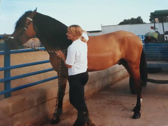 Este es el estado en el que se encuentra Tina tras haber perdido al caballo que, además de acompañarla durante media vida, le brindaba asistencia terapéutica. La muerte le ha venido provocada, dice, por una actuación negligente del Club Hípico Buenavista de la localidad de Aljaraque, donde se encontraba Tesoro.