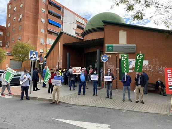 La Orden del 8 de noviembre de la Junta de Andalucía que recorta derechos de los profesionales de la sanidad pública ha llevado a los sindicatos a aprobar un calendario de movilizaciones que hoy ha tenido su continuidad tras comenzar el pasado martes en el hospital Juan Ramón Jiménez de la capital. CSIF ha participado -cumpliendo los protocolos de seguridad- en la concentración de esta mañana en el centro de salud Los Rosales para exigir la derogación de la mencionada Orden que, según esta central sindical, “cercena derechos fundamentales que afectan a más de 6.700 profesionales de la sanidad pública en la provincia de Huelva”.