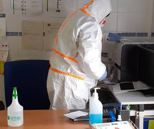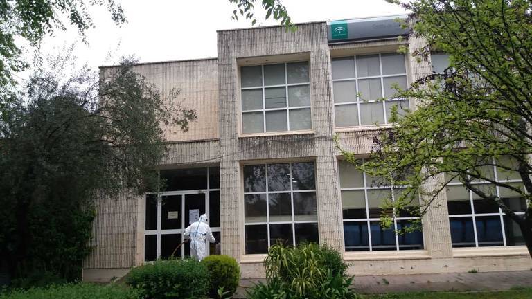 Los equipos de desinfección del Infoca (dispositivo para la Prevención y Extinción de Incendios Forestales) trabajan hoy en el centro de salud de El Campillo. Esta es una de las dos actuaciones programadas en la provincia, la otra está siendo en Aracena. Un contingente formado por 13 personas y 8 vehículos es el encargado de desinfectar el centro de mayores Reina de los Ángeles y el centro de Salud de la localidad serrana.
