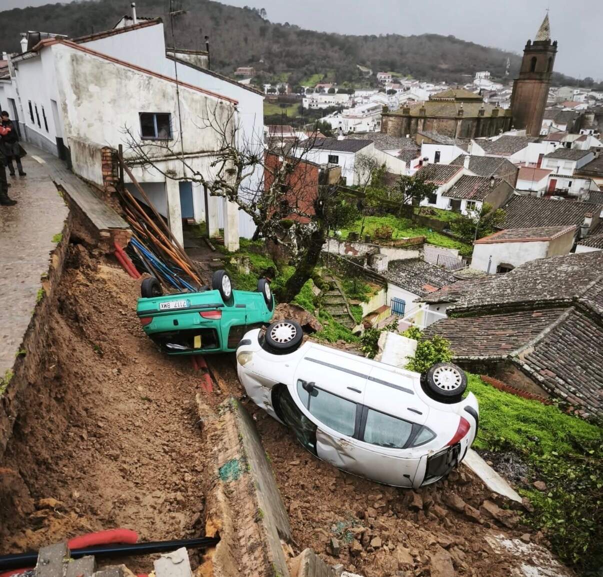 La actuación ha sido llevada a cabo por efectivos del parque de Jabugo, con la participación de dos cabos, cuatro bomberos y un sargento, que han realizado labores de apuntalamiento y aseguramiento de la zona para evitar nuevos desprendimientos. Según han informado los servicios de emergencia, no se han producido daños personales, aunque sí se han registrado daños materiales como consecuencia del corrimiento de tierras.
