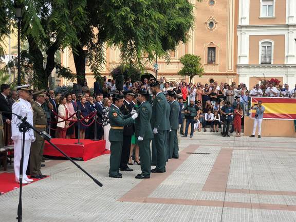 Tras la celebración de la misa, las autoridades civiles y militares se dirigieron a la Plaza de la Paz, aneja al Templo, donde tuvo lugar la izada de una bandera española, mientras sonaron el Himno Nacional y el de la Benemérita, entre otros. Tras el solemne izado de la Bandera, se procedía a la imposición de la Cruz al Mérito Militar con distintivo blanco, al agente Francisco Javier Fuentes Pérez, condecoración que le fue colocada por el Alcalde de la localidad, Jenaro Orta.