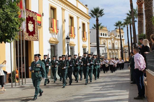 En la Plaza España de La Palma del Condado el alcalde del municipio, Manuel García Félix, anunciaba que La Palma dedicará una plaza en honor al cuerpo que se llamará “Plaza de la Guardia Civil”. También en este acto se procedió al izado de la Enseña Nacional. Para ello, los hijos de los Guardias Civiles de La Palma portaron la Bandera Nacional desde el Ayuntamiento hasta donde se encontraban las autoridades en la Plaza España. La celebración de esta festividad comenzaba con la Santa Misa en honor a la Virgen del Pilar en la Parroquia de San Juan Bautista a las 11 de la mañana.