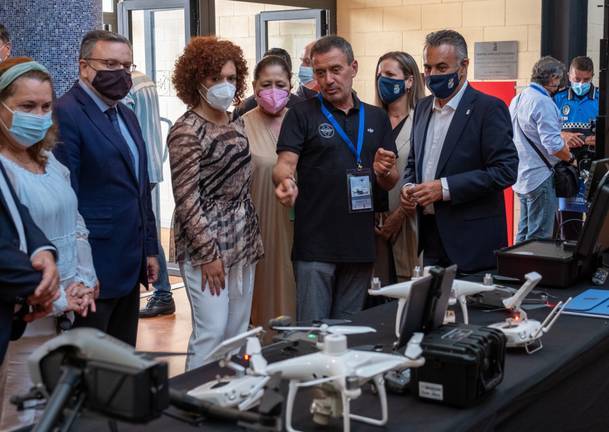 Antes de visitar Ayamonte, la presidenta de la Diputación de Huelva, María Eugenia Limón, ha participado, en Isla Cristina, en la inauguración de la primeras Jornadas de Emergencias con Drones 'Jedron 2021'. Allí ha puesto en valor el uso de los drones "no solo como elemento fundamental para la seguridad y emergencia, sino también para su aplicación en otros sectores tan importantes para la economía provincial como la agricultura o la minería".