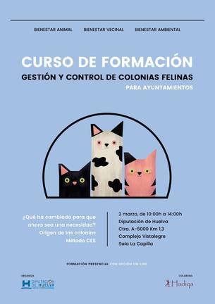 Para esta asistencia técnica la Diputación de Huelva está contando con la colaboración de la Asociación de Educación Ambiental HADIQA, que ya tiene experiencia previa en la gestión y control de colonias felinas.