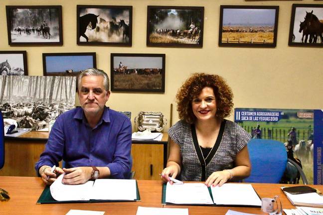 La presidenta de la Diputación de Huelva, María Eugenia Limón, y el presidente de la Asociación Nacional de Criadores de Ganado Marismeño (ANCGM), Juan Adolfo Arangüete, han suscrito hoy en Almonte un convenio de colaboración con el que ambas instituciones van a seguir velando por la continuidad de la raza autóctona marismeña, facilitando el conocimiento de estas razas autóctonas de la provincia y destacando sus aportaciones históricas, sociales y económicas al patrimonio provincial.