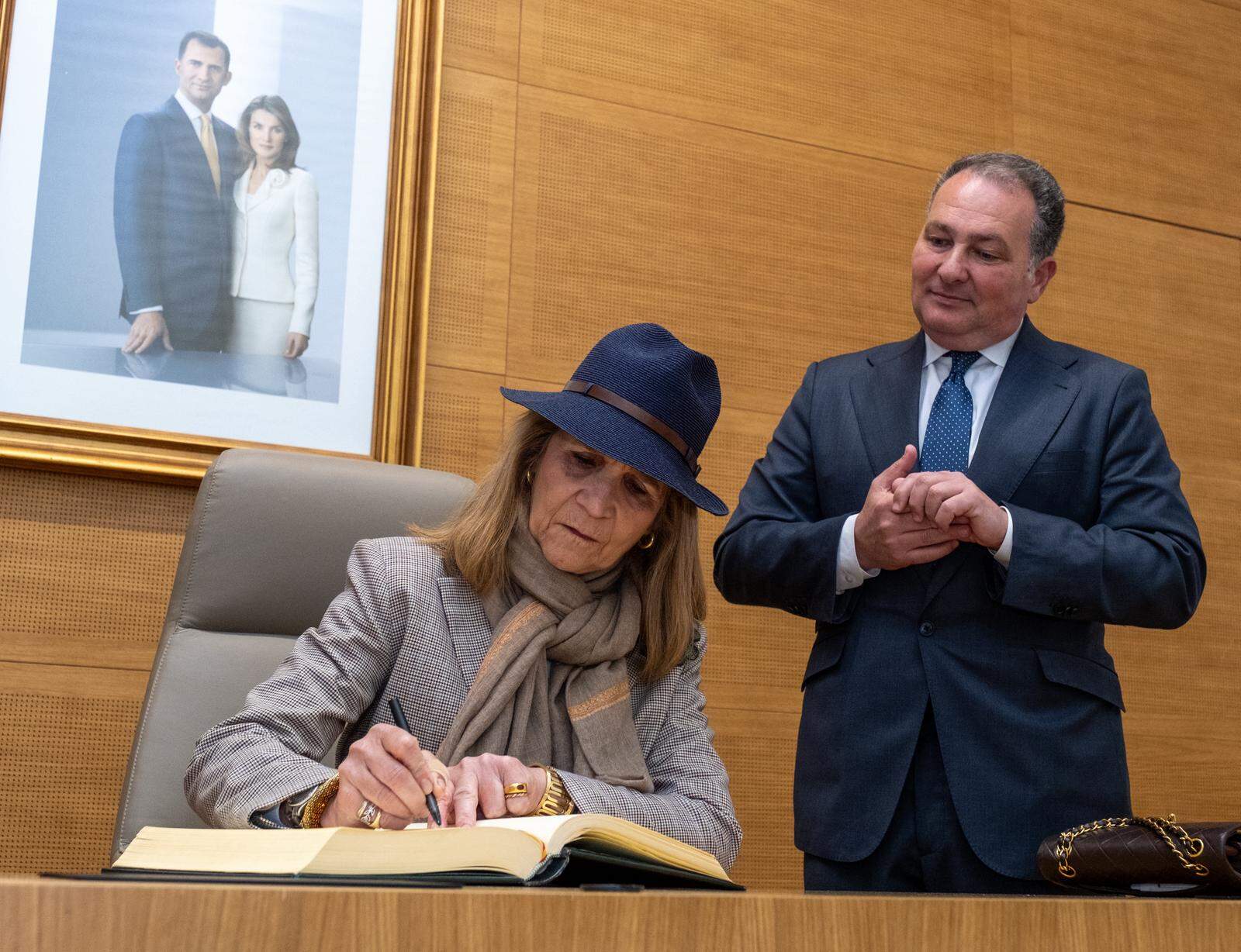 Uno de los momentos más destacados de la visita fue la firma de la infanta en el Libro de Honor de la Diputación de Huelva, un gesto simbólico que refleja el vínculo de la Casa Real con la provincia. En su dedicatoria, doña Elena expresó su deseo de “volver pronto a conocer bien la tierra”.