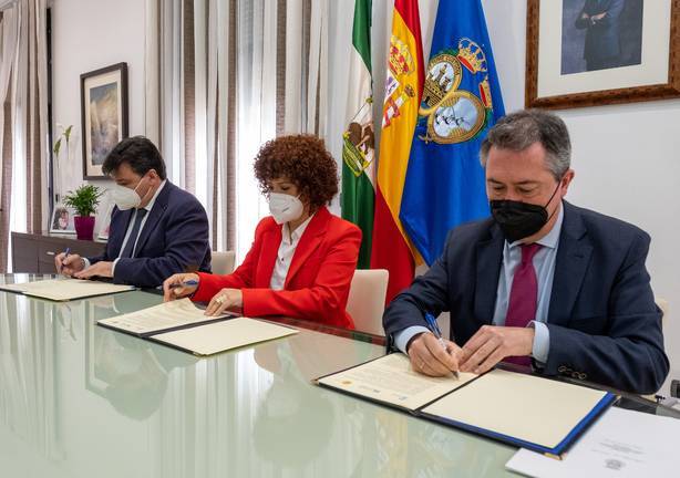 Agradecimiento que ha hecho extensivo a alcalde de Sevilla, Juan Espadas, por un convenio "que redunda en la visión colaborativa que tenemos que tener de los espacios de nuestra provincia y de unir sinergias en tornos a los sectores productivos".