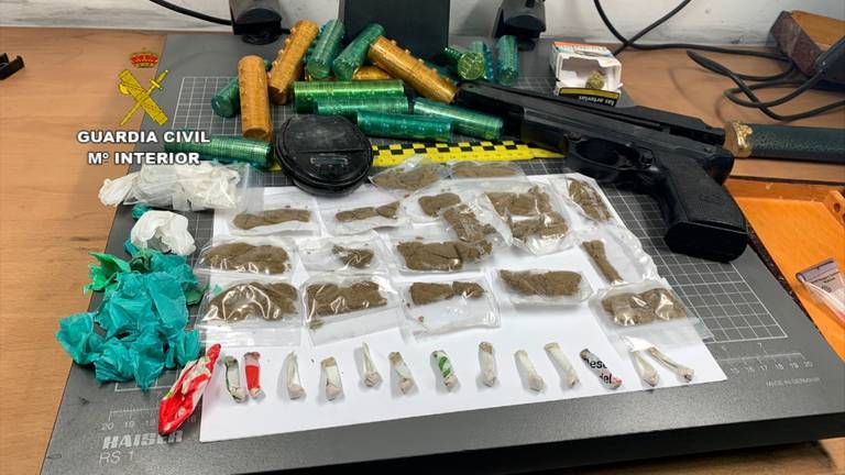 En total se incautaron 50 gramos de cocaína, 1.200 gramos de hachís en placas, 4.500 gramos de marihuana, 80 plantas de marihuana y 6.700 euros en billetes de diferente valor, así como objetos que pudieran ser procedentes de otros hechos delictivos.
