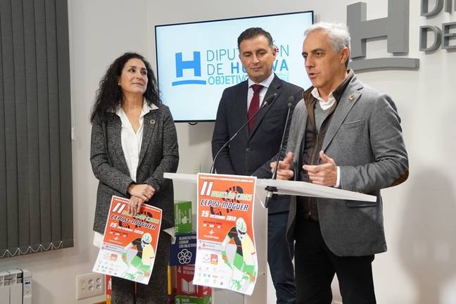 En la rueda de prensa intervinieron también el diputado de Estructura, José Manuel Alfaro, y la concejala de Deportes de Moguer, Paqui Griñolo, quienes junto a Cuéllar y Millán explicaron a los medios de comunicación las características de esta prueba que se organiza fruto de la colaboración entre Ayuntamiento de Moguer y Fundación Cepsa, y que en esta segunda edición tiene un claro componente solidario ya que se ha creado el denominado “dorsal 000” para que quienes lo desean colaboren con la asociación Médula-TE Mario Villar que promueve la donación de médula y la investigación del cáncer infantil.