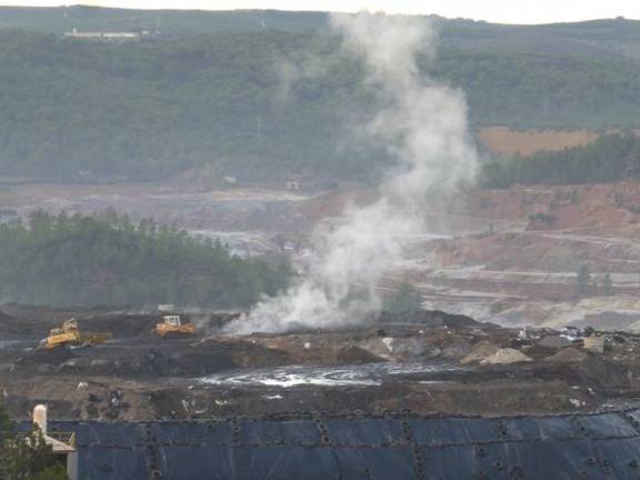 Ecologistas en Acción ha denunciado hoy un nuevo incendio en el vertedero de residuos tóxicos y peligrosos de Nerva. Los hechos, según la organización conservacionista han acaecido sobre las 8.45 de este martes, cuando algunas personas que circulaban a esa hora por la zona han advertido una gran columna de humo en las instalaciones que gestiona Ditecsa Soluciones Medioambientales S.L.. En la denuncia han aportado esas fotografías para acreditar los hechos.