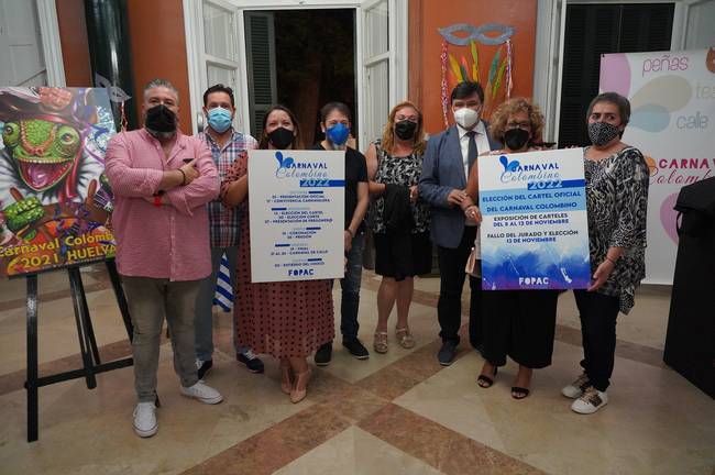El Salón de Chimeneas de la Casa Colón de Huelva ha acogido la presentación oficial de los actos del Carnaval Colombino 2022; que como novedad, frente a otras localidades andaluzas, mantendrá las fechas de la fiesta y no retrasará ni su concurso ni el carnaval de calle.