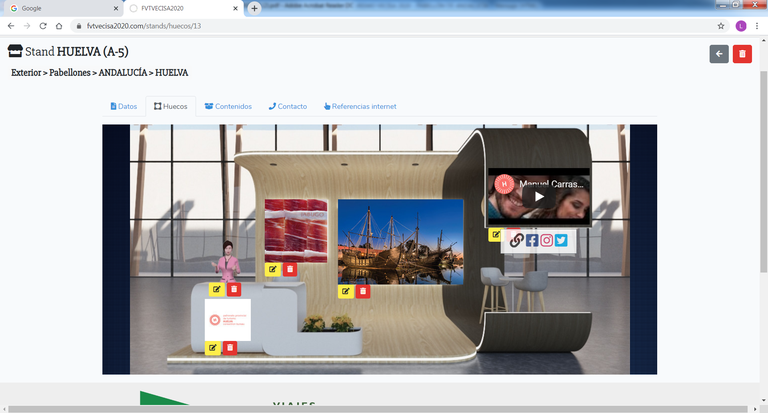 La feria virtual cuenta con tres espacios. Uno de ellos es de bienvenida, donde el visitante se encuentra con las distintas tipologías de ofertas, como planes en familia, escapadas a la costa, experiencias gastronómicas o paquetes combinados a través de agencias de viajes. Una vez que el visitante pincha en el escaparate que le interesa accede a un espacio donde encuentra un panel con todas las ofertas relacionadas con la actividad seleccionada.
