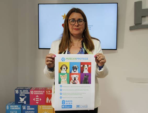 La diputada de Medio Ambiente, Rosa Tirador, ha presentado esta mañana la segunda edición de la Feria Provincial de adopción de animales ‘Huelva protege’ organizada por la Diputación de Huelva, a través del Servicio de Medio Ambiente, que tendrá lugar el próximo domingo, 8 de mayo, en la explanada del Foro Iberoamericano de La Rábida desde las 10:00 hasta las 18:00 horas.