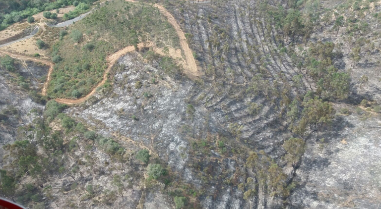 Al alcanzar el mediodía, sin estar controlado, el Infoca informaba del gran trabajo del contingente en el incendio, y mostraba una toma desde el helicóptero de la zona afectada.