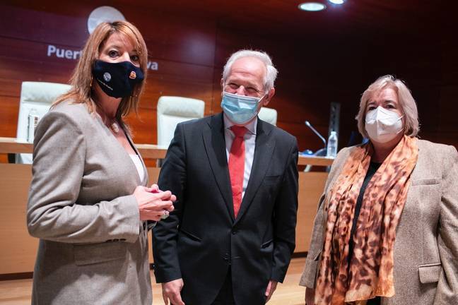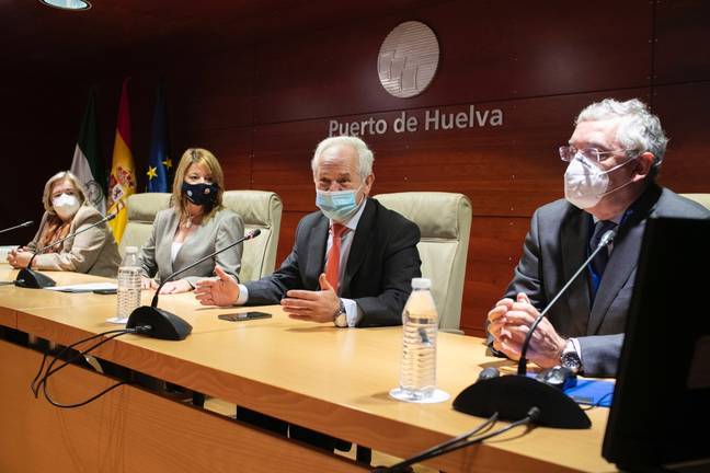 La presidenta de la Autoridad Portuaria de Huelva Pilar Miranda, ha asistido hoy a una jornada de de trabajo junto con el director general de Gestión Económica y Servicios del Servicio Andaluz de Salud, José Antonio Miranda, la delegada Territorial de la Consejería de Salud y Familias, Manuela Caro y el el director de la Autoridad Portuaria de Huelva, Ignacio Álvarez-Ossorio, con el objetivo de establecer las líneas básicas de un protocolo de colaboración para el desarrollo de la Plataforma Logística Sanitaria en Huelva. Esta plataforma se configurará como centro logístico para el almacenamiento y distribución de productos sanitarios y gestión de stock de emergencias disponible, garantizando que los centros sanitarios de toda la provincia cuenten con el suministro adecuado de estos productos.