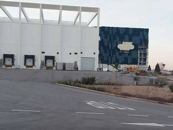 La nueva factoría de El Pozo en Jabugo luce ya su emblema y encara su inauguración