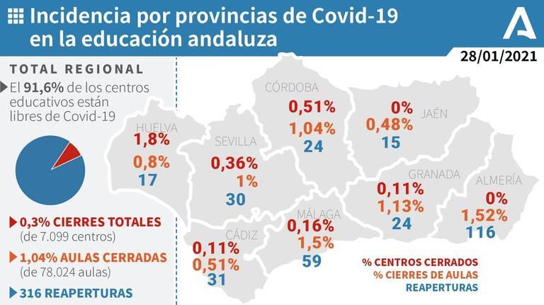 A nivel de Junta de Andalucía, el contacto entre las Consejerías de Educación y de Salud es constante y se irán tomando las medidas oportunas, según la evolución de la pandemia.