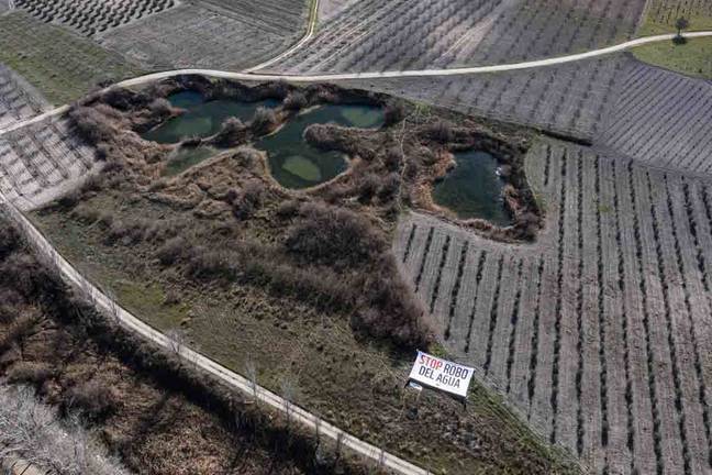 Día de los humedales: una enorme pancarta denuncia en Europa el 'robo del agua' en Doñana
