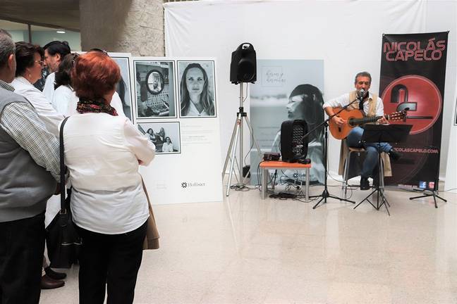 La exposición se encuentra ubicada en el conocido ‘patio de los potos’ del centro hospitalario hasta el próximo 8 de noviembre y ha sido presentada esta mañana en un emotivo encuentro. El acto ha sido amenizado por el reconocido cantautor onubense Nicolás Capelo, quien ha dedicado de forma altruista varios temas a los pacientes y profesionales congregados con esta finalidad.