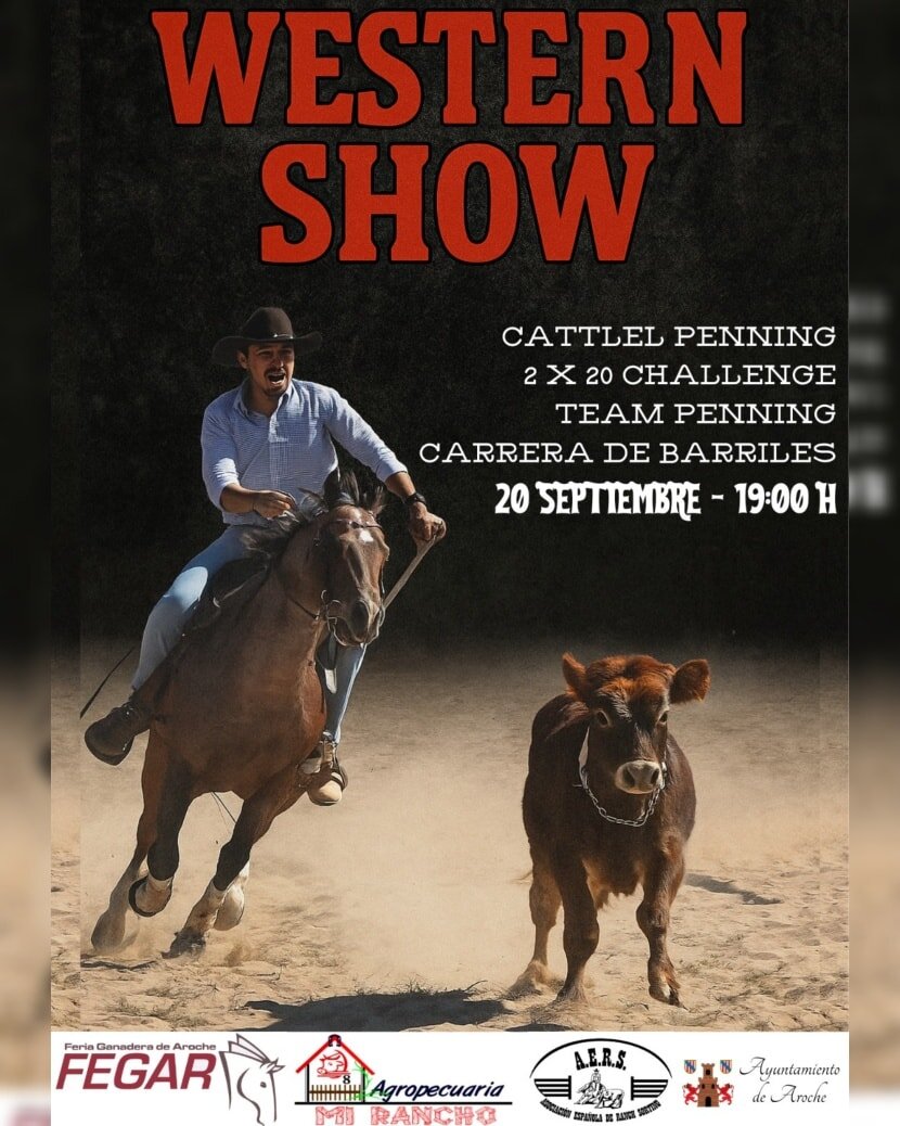 La Feria Ganadera de Aroche (FEGAR) incorporará este año una de sus grandes novedades: un auténtico Western Showque promete trasladar al público al espíritu del viejo oeste. El espectáculo se celebrará el próximo 20 de septiembre, a las 19:00 horas, en el Recinto Ecuestre “D. Manuel Cascajo Taboada”, y está concebido como una experiencia única para toda la familia.