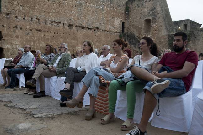 Tras la presentación, que ha estado conducida por Juan José Oña, Imperdibles Artes Escénicas ha ofrecido su espectáculo de música con video mapping Cantigas 2.1, sobre los paños de la muralla del patio de armas del Castillo.