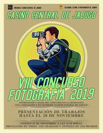 Tras siete años de éxito de participación y de calidad en los trabajos presentados, la Asociación Cultural Casino Central de Jabugo convoca su VIII concurso de fotografía. Aunque es de temática libre, las imágenes deberán ser originales y reflejar cualquier aspecto urbano del término municipal de Jabugo y sus núcleos urbanos (El Repilado, Los Romeros y El Quejigo), aunque también pueden ser fotografías ajenas al municipio, pero, eso sí, con ámbito comarcal dentro de los límites del Parque Natural Sierra de Aracena y Picos de Aroche.