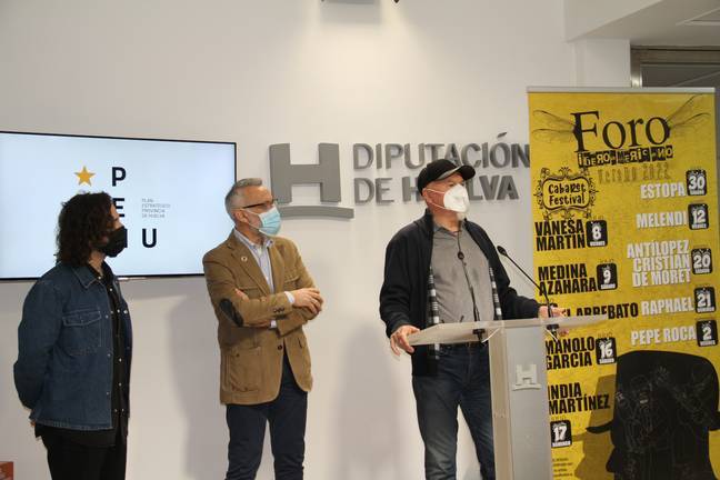 La Diputación de Huelva se ha adelantado al verano para presentar la programación musical del Foro Iberoamericano de la Rábida 2022, “uno de los eventos culturales del periodo estival más esperado y mejor valorado por el público, junto al Festival de Teatro y Danza Castillo de Niebla, en un lugar de referencia del entorno colombino como es este auditorio rabideño”, ha señalado el vicepresidente de Innovación Económica y Social, Juan Antonio García, que ha sido el encargado de la presentación del cartel, junto a dos de los artistas participantes, los onubenses Pepe Roca y Cristian de Moret.