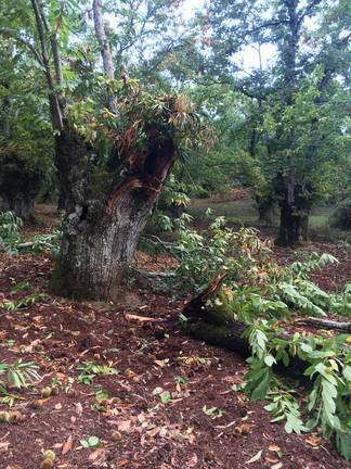 Calculan que uno de cada cuatro castaños del término municipal han podido quedar dañados, lo cual repercutirá negativamente en la cosecha, que ya de por sí venía lastrada por las adversas condiciones meteorológicas y por las enfermedades de la arboleda.