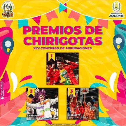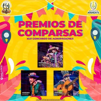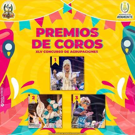 La comparsa “Las batallitas del capitán Alegría.”, que dirige Pedro Suárez, la chirigota de Ángel Sánchez, “A Eurocomparsa”, y el coro de Huelva “Así soy yo”, que dirige Manuel Tirado han sido los ganadoras del LXV Concurso Local de Agrupaciones del Carnaval de Ayamonte, que a lo largo de los últimos días se ha celebrado con gran éxito en el teatro Cardenio de la ciudad fronteriza de la mano del Área Municipal de Festejos del Ayuntamiento y de la Asociación de Carnavaleros de la localidad, y en el que han participado once agrupaciones.