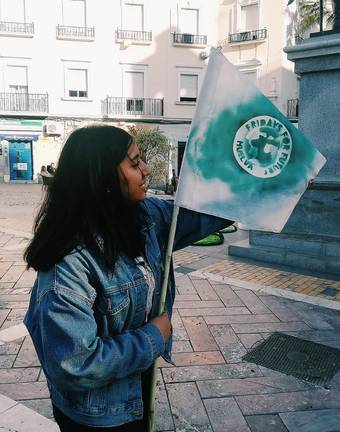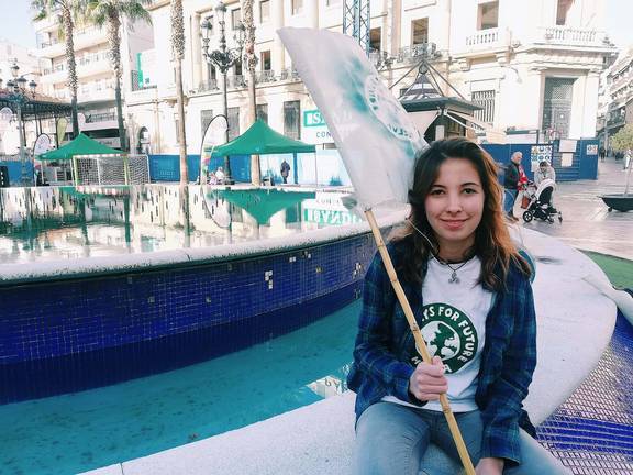 también tiene 18 años, es de Huelva y estudia 1º de Ingeniería Informática. Para ella, Fridays For Future es un movimiento ecologista basado en la juventud, que además es abierto, plural, transversal y apartidario."Somos la voz de los científicos que llevan años advirtiendo de la catástrofe climática, lo que antes llamaban cambio ahora es una crisis y vamos a contrarreloj. Es innegable y aún así no hay reacción. El planeta no nos necesita a nosotras pero nosotras sí lo necesitamos, no tiene sentido destrozarlo. En marzo de 2019 me enteré por Instagram de la primera manifestación en Huelva (15M) y asistí con unas amigas. Posteriormente fui a asambleas y tras conocer el objetivo, el código ético, las bases del movimiento… decidí involucrarme y participar de forma más activa. Es una lucha honesta y necesaria. Sin planeta no hay lucha. Y si perdemos el planeta todas las luchas pierden el sentido", explica la joven activista.