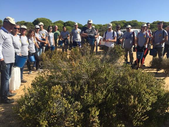 Un grupo de 20 voluntarios de la Red Natura 2000 de Doñana, pertenecientes a la Sociedad Española de Ornitología (SEO), ha protagonizado la primera actividad de voluntariado para la recuperación del ecosistema alterado por el incendio que se declaró en Las Peñuelas (Moguer) el pasado 24 de junio.