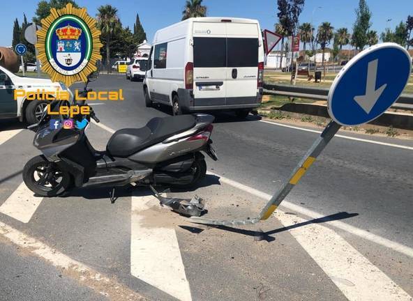Un motorista ha sido trasladado al hospital tras colisionar con una señal de tráfico en una rotonda de Lepe. Así lo ha hecho saber la Policía Local de la localidad en sus redes sociales, que ha aclarado que está investigando las causas de este accidente ocurrido en la tarde de este sábado.