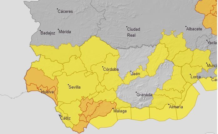 La Agencia Estatal de Meteorología (AEMET) eleva a naranja el aviso por fuertes lluvias en Huelva, desde esta medianoche.