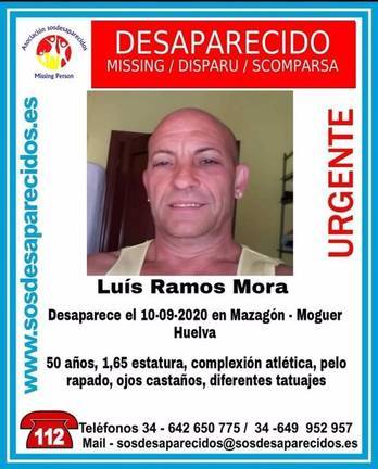 El primer caso que ocupó el interés de la familia y de las Fuerzas y Cuerpos de Seguridad es el de Luis Ramos. Desapareció en Mazagón sobre el 10 del mes pasado y desde entonces se desconoce su paradero, a pesar de que la familia también se ha movilizado en su búsqueda. Luis tiene una estatura de 1,65, pesa unos 70 kilos y tiene 50 años de edad.