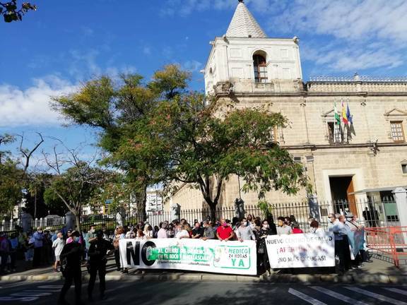 Vecinos de San Bartolomé de la Torre, Almonte, El Almendro, Escacena del Campo, Matalascañas, Gibraleón, Mazagón, Moguer, Paterna del Campo y El Rocío se han manifestado frente al Parlamento de Andalucía para reclamar el restablecimiento de estos servicios suprimidos.