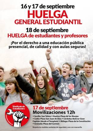 Pero no solo el Sindicato de Estudiantes ha anunciado que se movilizará para la huelga, sino que la Confederación andaluza de asociaciones de padres y madres del alumnado por la educación pública (CODAPA) ha advertido que convocará movilizaciones comunes en las ocho provincias de Andalucía y apoyará las protestas y acciones reivindicativas unitarias que surjan para exigir una vuelta segura a las aulas.