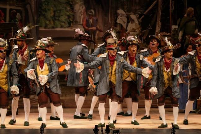 Salían a escena como trovadores con mil batallas perdidas, como un poeta con alma de coplero. En el primero de los pasodobles aseguran que el carnaval es una religión que perdona los pecados a golpe de nudillos: "Entra sin pedir permiso, bienvenidos al paraíso, el reino de los trovadores". El segundo, un recuerdo a la memoria del autor fallecido Juan Carlos Aragón, haciendo un recorrido por sus coplas: "que en la tierra y en cielo, estas serán por siempre inmortales"