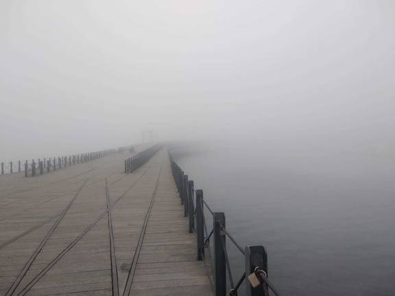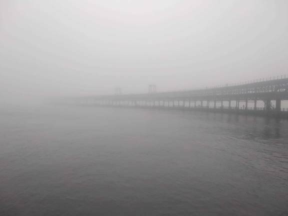 Pero no, es Huelva. Una Huelva que luce linda bajo la niebla. Aunque como es obvio el fenómeno no deja ver más allá de 50 metros como mucho.