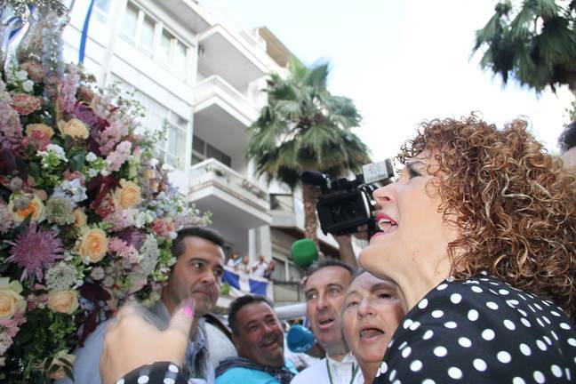 Como es tradicional se vivieron momentos muy emotivos a su paso, entre otros lugares, por el monumento a la Virgen del Rocío que abre las puertas de la Gran Vía.