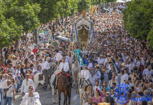 La Hermandad deja ya atrás la ciudad y se adentra en su peregrinación por los caminos. Pero antes se quedan en la retina decenas de estampas emocionantes y miles de fotografías que engrandecen aun más a Huelva.