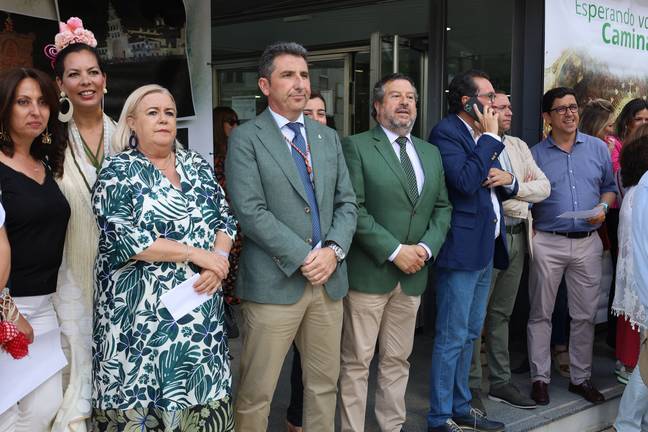 En la Diputación de Huelva, al igual que sucediera ayer con Emigrantes, la presidenta de la institución, María Eugenia Limón, lanzó los vivas a la Hermandad, al Simpecado y a la Virgen del Rocío.