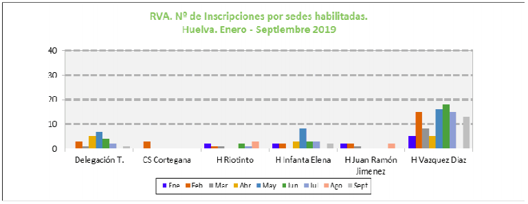 Durante los nueve primeros meses de 2019 se han inscrito en Huelva un total de 170 personas, de las que 95 han sido en el Hospital Vázquez Díaz (hay que señalar que es el lugar en el que se encuentra la Unidad de Hospitalización de Cuidados Paliativos de Huelva). Al Vázquez Díaz le sigue el hospital Infanta Elena con 23 registros y la Delegación Territorial también con 23. El registro del Hospital de Riotinto ha sido escogido por 10 ciudadanos, mientras que el Hospital Juan Ramón Jiménez ha registrado 7 solicitudes, y el centro de Salud de Cortegana, 3 solicitudes.