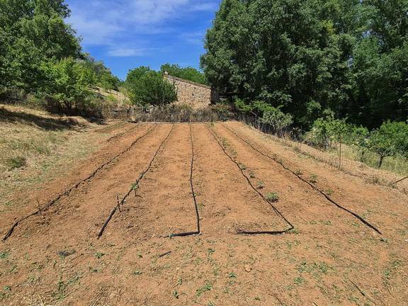 Además de varias vistas del desarrollo de la tarea, el 26 de mayo ya está instalado el sistema de riego, después de vencer numerosos problemas. El aporte de agua genera una nueva ilusión, ya que apenas unos días después ya se ve el crecimiento leve de algunas plantas del huerto.