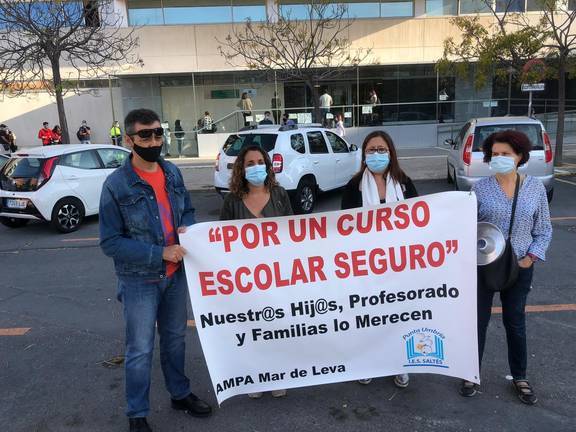 Por su parte, la AMPA 'Mar de Leva', que se ha estado concentrando en estos días a las puertas del centro, ha trasladado sus reivindicaciones a Huelva, donde han procedido a la lectura de un manifiesto. Mariló Duque, miembro de la junta directiva, ha afirmado que “siguen sin garantizar la distancia de seguridad en el aula y desde la administración no se nos da respuestas”. Por ese motivo, como “padres y madres responsables y con preocupación, que no olvidan que el centro Saltés es en el que más personas se concentran, hasta un total de 800, exigimos los medios para que en nuestro centro se puedan minimizar los riesgos”.
