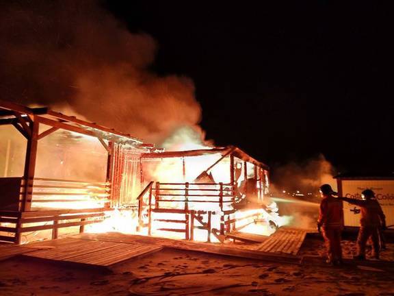 Un incendio arrasa un chiringuito de Mazagón en plena noche