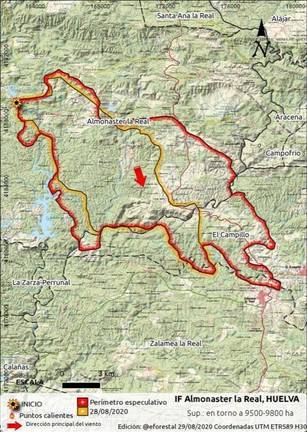 El parte del Gobierno central y la Junta de Andalucía dice que el incendio sigue activo y continúa preocupando el frente pegado a La Zarza-Perrunal, que va hacia el sur y que los efectivos del Infoca y la UME tratan de controlar. Además, han destacado que el perímetro ha crecido durante esta noche, superando ya las 10.000 hectáreas.