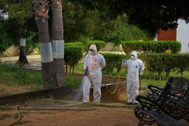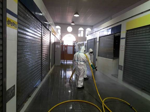 En las labores de desinfección ha participado un contingente formado por un amplio equipo de técnicos, bomberos forestales y agentes de Medio Ambiente, a los que se han sumado un vehículo ligero con una capacidad de 500 litros, y un vehículo pesado de 4.000 litros provisto de autobomba, donde se efectuó la mezcla del desinfectante (hipoclorito sódico) con agua en las cantidades indicadas para esta tarea. A ello se añaden equipos individuales, y mochilas pulverizadoras, empleadas para desinfectar elementos específicos que no soportan la presión de los vehículos o que requieran una mayor precisión y minuciosidad.