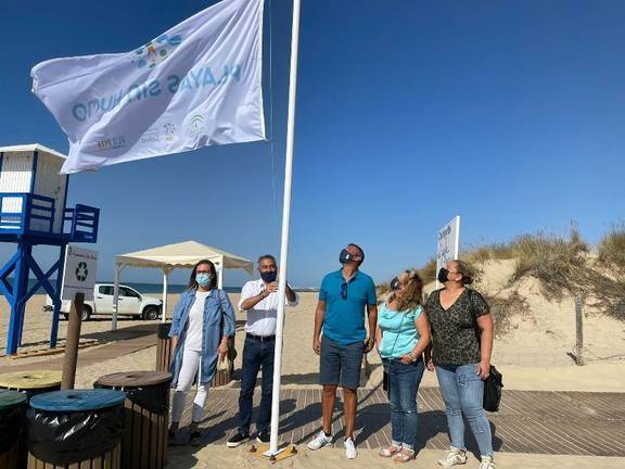 Seguidamente se procedió a la izada de la bandera 'Playa libre de Humos' concedida por la Junta de Andalucía a sólo cuatro playas de la costa onubense.